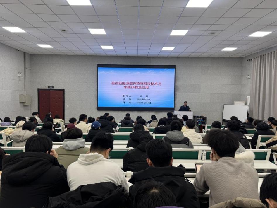 2026年1月13日,华北电力大学沙河院区成功举办求实论坛“能源报国·研途启航”系列第三讲——《退役新能源器件热解回收技术与装备研发及应用》专题学术报告会,特邀华北电力大学陆强教授担任主讲嘉宾。沙河院区辅导员以及来自电气学院、能动学院、控计学院、经管学院、新能源学院、核学院、环境学院等206名硕士研究生参加。报告会由沙河院区党委书记马博主持。