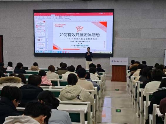 为进一步提升同学们的心理健康专业素养和实践能力,增强学生心理委员在班级内的心理帮扶能力与朋辈互助中的组织引导效能,3月10日,华北电力大学沙河院区联合心理健康教育中心开展了主题为《团体活动组织与心理辅导技巧》的专题讲座。心理健康教育中心的许玉萍老师受邀担任此次讲座的主讲嘉宾,院区全体辅导员出席,各班心理委员全体参加。本次专题讲座围绕团体活动设计实施、带领者核心能力培养以及心理教育资源支持等内容,为大家进行了心理相关知识的讲解与科普。讲座中,许玉萍老师结合实际案例与工作经验,深入阐释了团体活动在心理健康教育中的重要作用,并重点介绍了团体活动的设计思路与实施技巧。